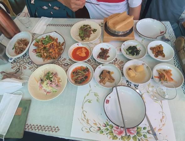 밑반찬은 감자 어묵 샐러드 도토리묵 김치류 등등등! 기본에 충실한 메뉴들이 많이 나왔고요 ㅎㅎ