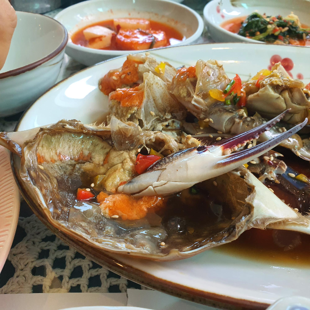 막내가 너무 좋아했던 간장게장 암꽃게! 암꽃게의 장점은 알이 있다는 것인데 그 알 때문에 만 원이나 차이가 난다는게 늘 신기한 듯합니다ㅋㅋㅋㅋㅋ 검소한 아빠와 오빠는 그냥 수 꽃게 먹지 왜 돈 더 주고 안 꽃게 먹냐고 하셨지만 기왕 먹을 거 맛있게 먹어야 된다는 여성들의 의견에 따라서 안 꽃게를 선택하였습니다 결과는 후회 없이 최고의 선택이었습니다ㅋㅋ