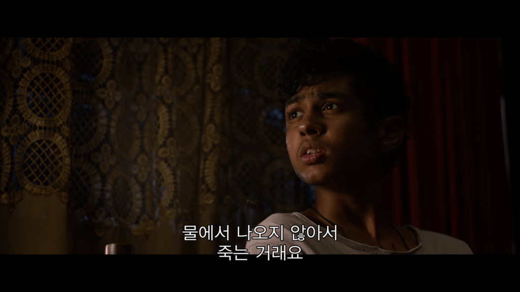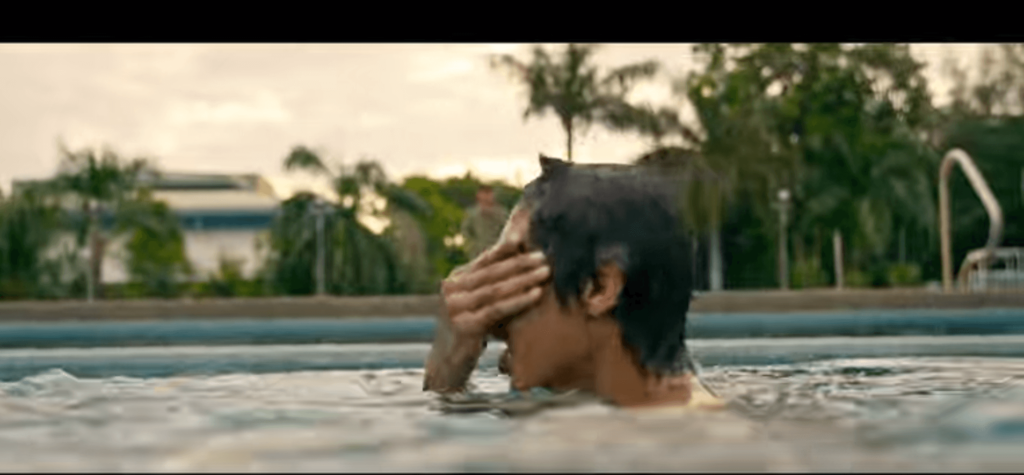 이를 통해 우리는 타일러가 죽지 않았으며 살아날 것임을 알 수 있죠. 영화는 시간이 흘러 일상을 살아가는 오비를 보여줍니다. 그는 수영장에서 다이빙을 하죠. 제일 처음에 타일러가 절벽에서 다이빙을 하고 물 속에서 명상을 하는 것과 오마주 되는 장면입니다. 물 밖으로 나온 오비를 멀찌감치 지켜보고 있는 한 남자.