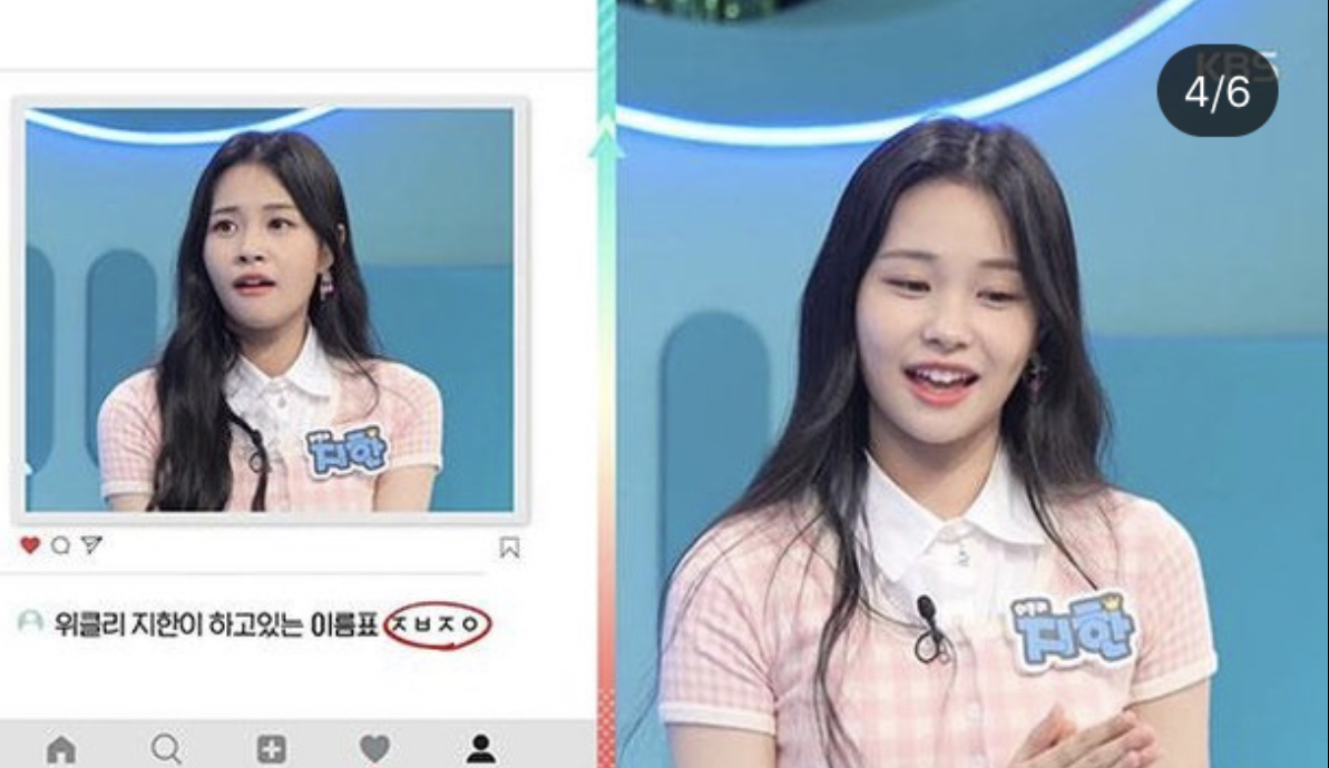 예를들어 ‘위클리 지한이 하고있는 이름표 ㅈㅂㅈㅇ’ 라고 지한 이미지 아래에 댓글을 단다는 것 입니다.